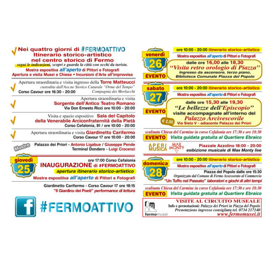 Un itinerario storico artistico nel centro storico della città di Fermo con il coinvolgimento delle associazioni culturali alla scoperta di luoghi storici e suggestivi da ammirare in compagnia di pittori e fotografi.