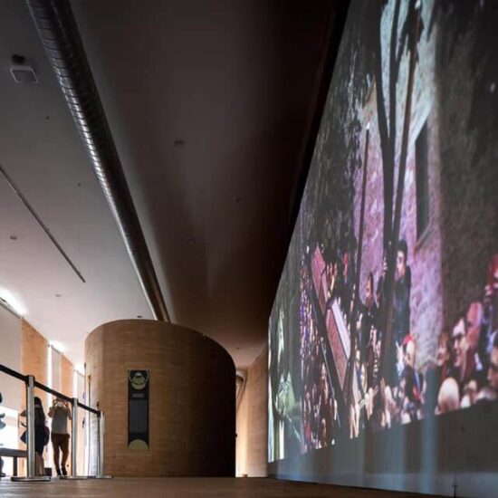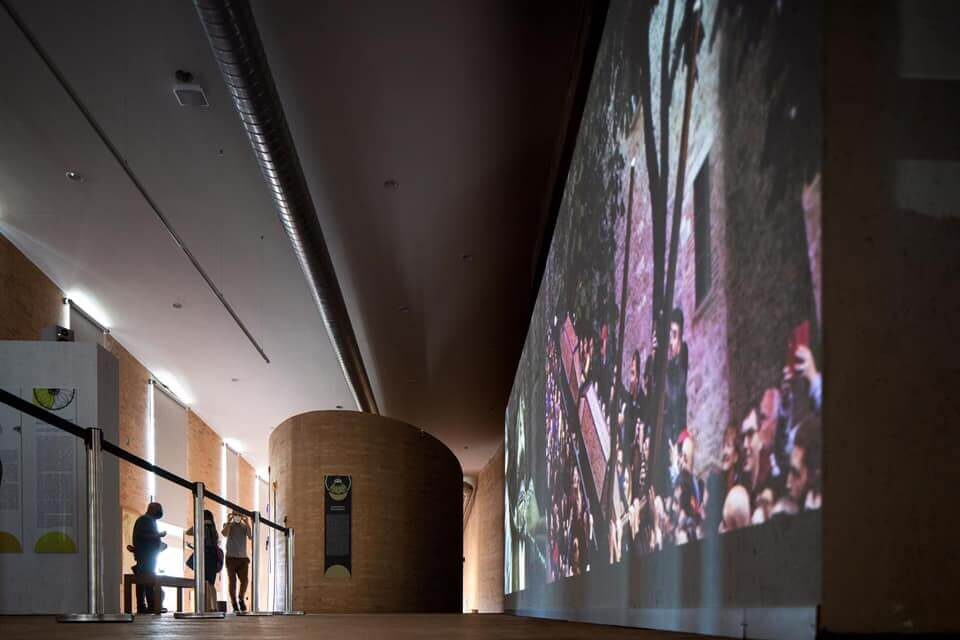 L’archivio di Antropologia Visiva dell’Istituto Centrale per il Patrimonio Immateriale, che conserva circa duemila documenti visivi realizzati – a partire dagli anni ‘40 del secolo scorso – da antropologi, documentaristi e cineasti attenti al mondo della tradizione, e opera anche come centro di produzione, negli ultimi anni ha avviato la sperimentazione di forme innovative di restituzione del patrimonio culturale immateriale, che si allontanano decisamente dal paradigma della cinematografia di tipo documentaristico, per approdare a forme più vicine ai codici comunicativi della video-arte. Il coinvolgimento di questa modalità narrativa, affidato allo sguardo non convenzionale sul patrimonio immateriale delle opere visive di Francesco De Melis, viene proposto nella mostra di Fermo dal gruppo di giovani creativi coordinati da Luca Ruzza, attraverso la costruzione di un’architettura visiva che mira all’“immersività” come esperienza di fruizione totale, e alla creazione di effetti visivi di grande impatto emotivo e comunicativo.