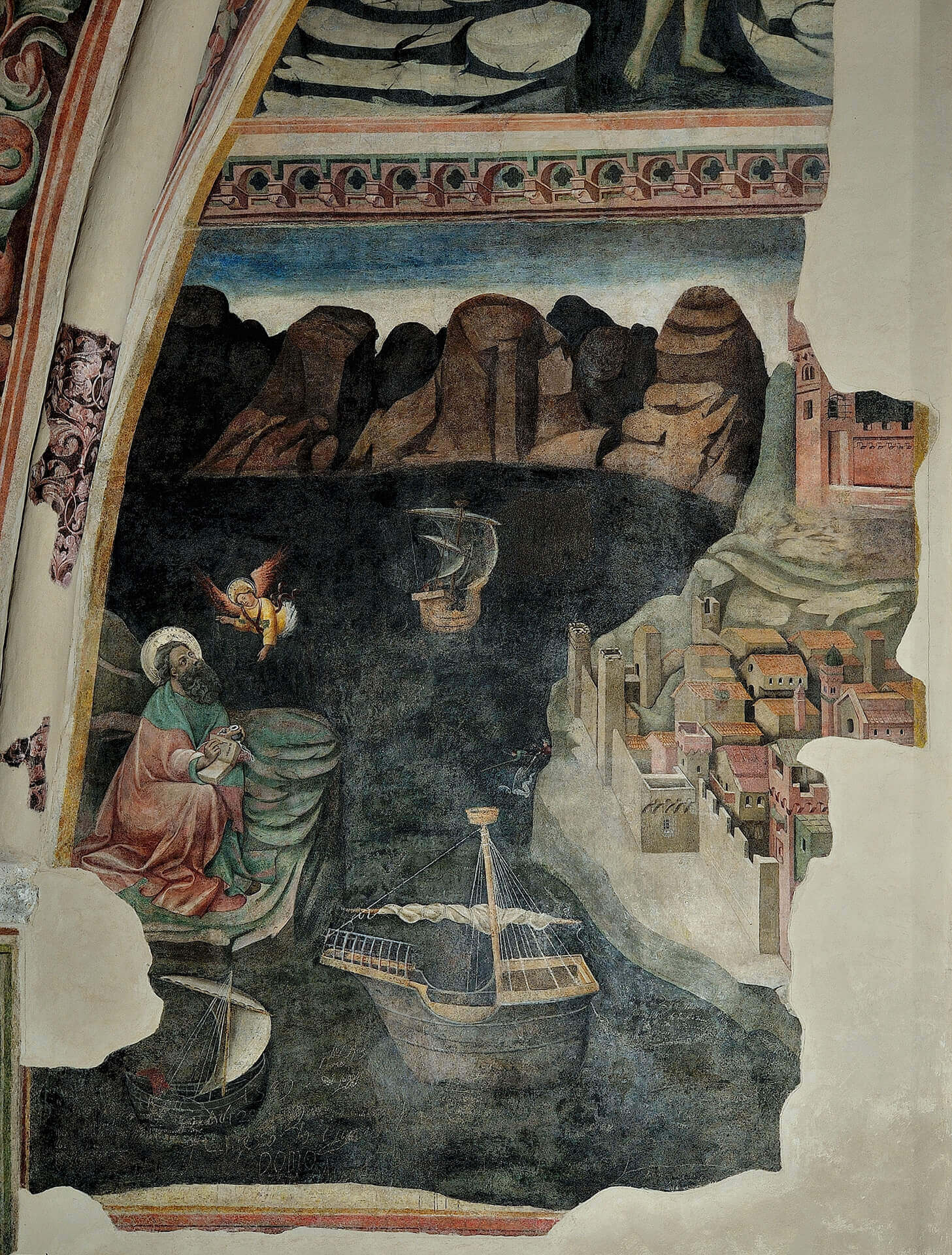 Even in anonymity, these frescoes represent however an important testimony of the transitional moment from the ornate and sumptuous style dear to the late Gothic masters to the more realistic and spatially coherent of the early Renaissance. The seductive courtly grace of some figures, with those participating in the “Banquet of Herod“, join the severe layout of other episodes, such as in “San Giovanni a Patmos” or in the “Preaching of the Baptist“, pervaded by an atmosphere of great emotional concentration.