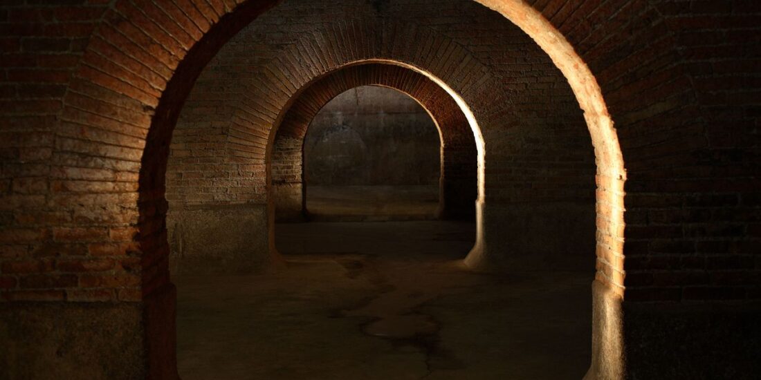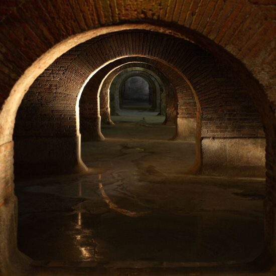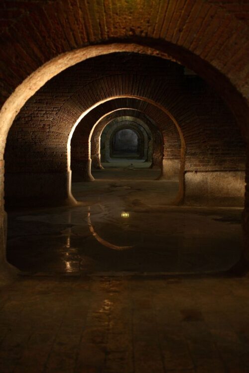 Among the oldest and largest in the world, the Roman Csterns of Fermo were built between the first century. B.C. and the first century. A.D. The 30 rooms that compose them, of equal size with barrel vaulting, extend over an area of 2,200 square meters. Ancient cisterns for the collection of water at the service of the city, were abandoned and forgotten until their partial reuse from the end of the 19th century, and for about a century, as a city aqueduct.