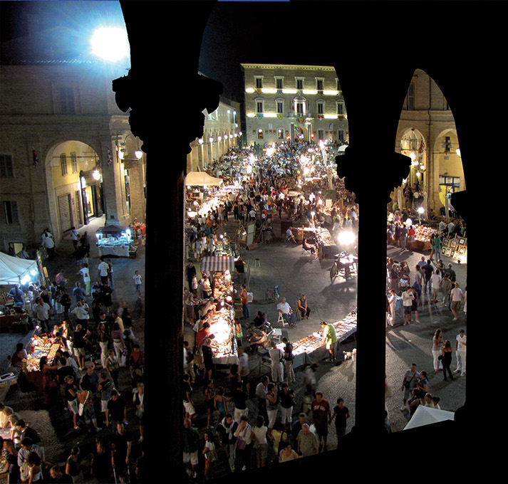 Un modo insolito di gustare il fascino della piazza di Fermo, la vivacità della Mostra Mercato dell’Antiquariato e dell’Artigianato, l’atmosfera della Biblioteca storica e la freschezza della sezione ragazzi.