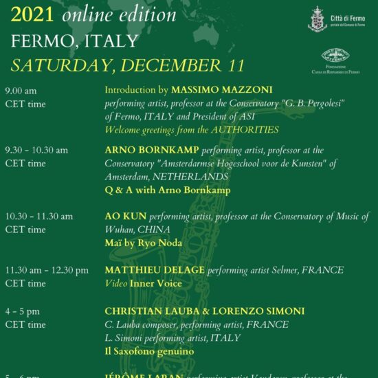 Lo Stage è organizzato dall’Associazione dei Sassofonisti Italiani in collaborazione con il Conservatorio di Musica “G.B. Pergolesi” .