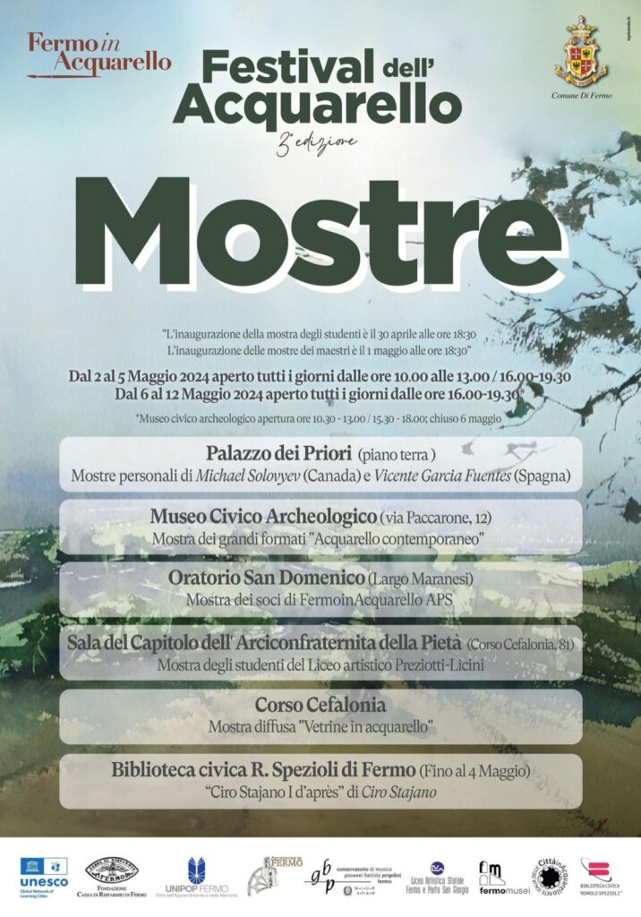 In collaborazione con: Arcidiocesi di Fermo, Conservatorio G.B. Pergolesi, Liceo artistico Preziotti-Licini, Musei di Fermo, Biblioteca civica R.Spezioli, rete italiana “Città inAcquarello”.
