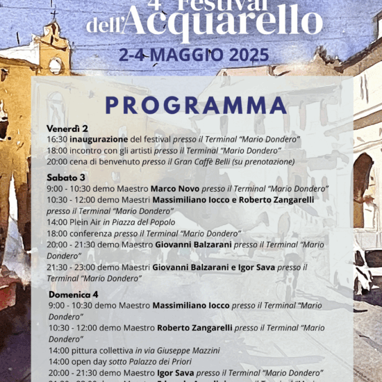 Dimostrazioni, Openday, Plein air, Workshop, Mostre, Arte e benessere, meeting e musica a cura dell'Associzione Fermo In Acquarello APS