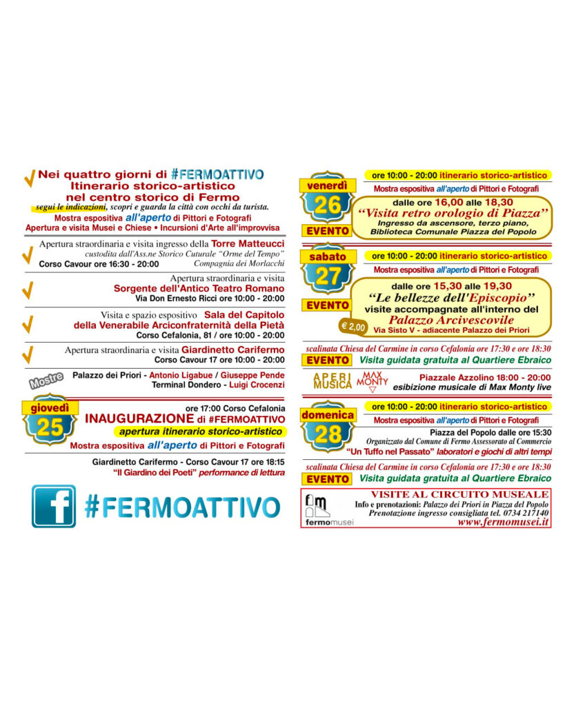 Un itinerario storico artistico nel centro storico della città di Fermo con il coinvolgimento delle associazioni culturali alla scoperta di luoghi storici e suggestivi da ammirare in compagnia di pittori e fotografi.