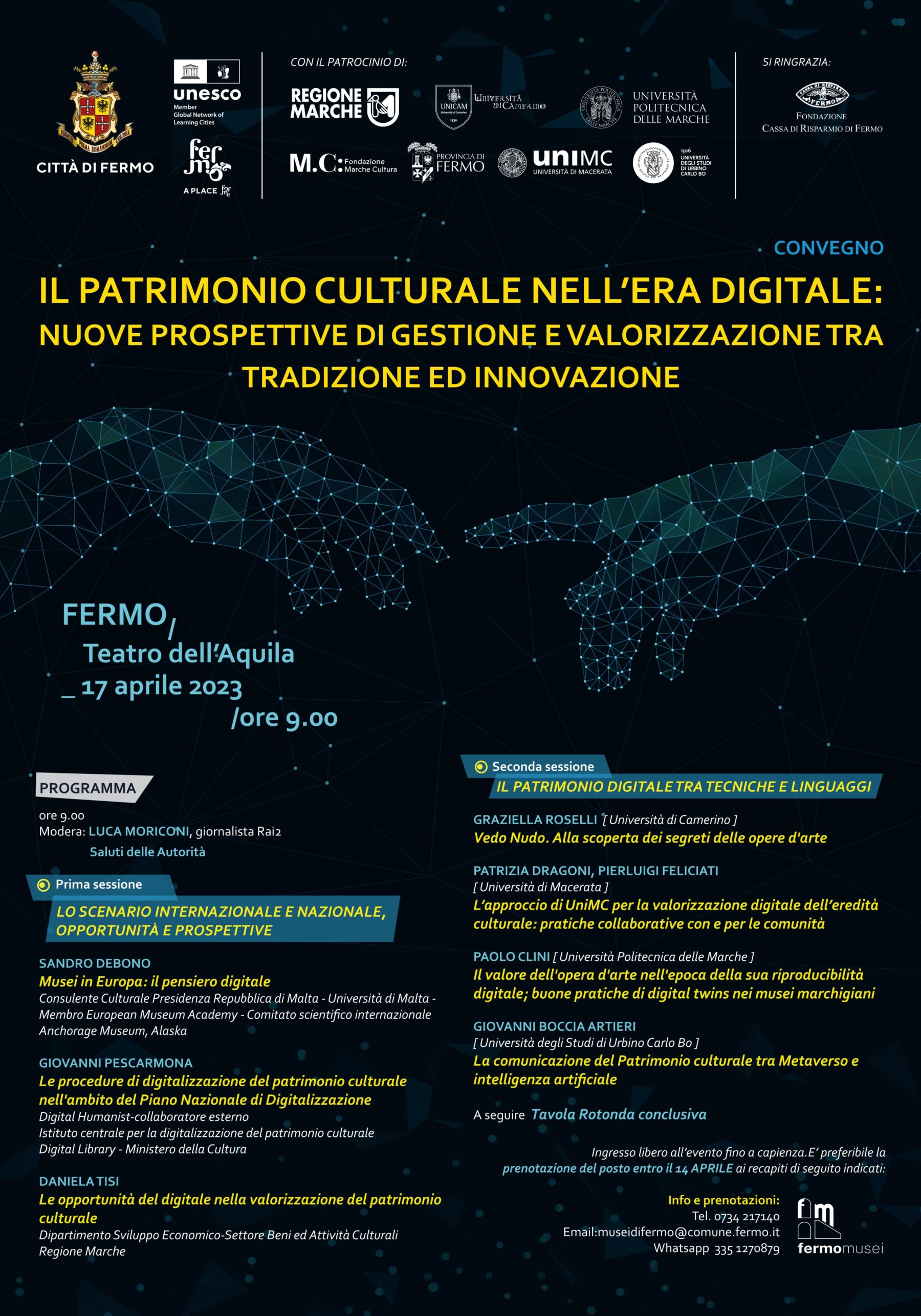 Assessorato alla Cultura con il patrocinio di Regione Marche, Università di Camerino, Università Politecnica delle Marche, Fondazione Marche Cultura, Provincia di Fermo, Università di Macerata, Università di Urbino