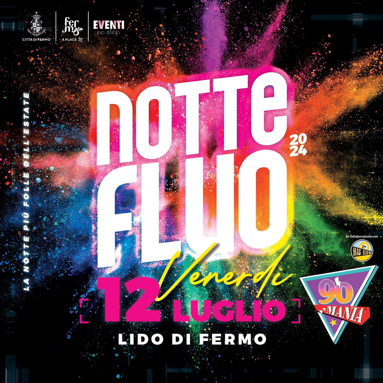 Una serata folle fino a tarda notte con la musica, gadget fluo, lancio di polveri e body painting