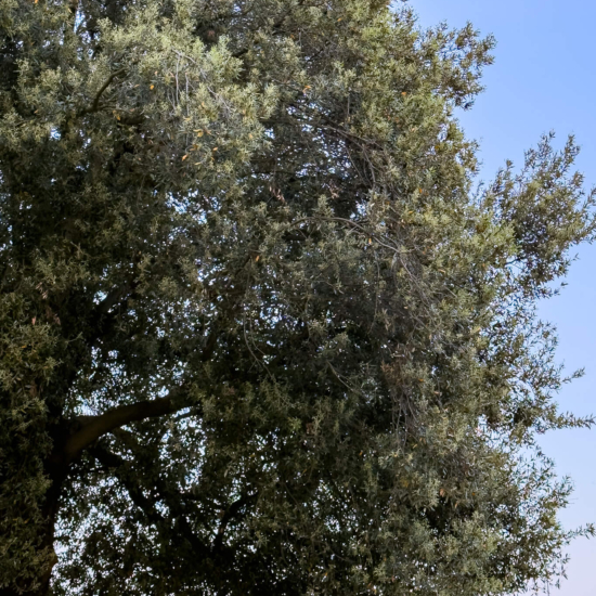 Il leccio (Quercus ilex L.) è uno degli alberi più rappresentativi della macchia mediterranea. Sempreverde e resistente alla siccità, cresce su terreni poveri e regala ombra tutto l’anno. Le sue ghiande nutrono molti animali e il legno, durissimo, era usato per attrezzi e carbone. Questo esemplare monumentale ci racconta di un tempo passato, di un equilibrio tra natura e persone che ancora oggi possiamo ammirare sotto la sua chioma qui a Villa Vitali.