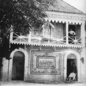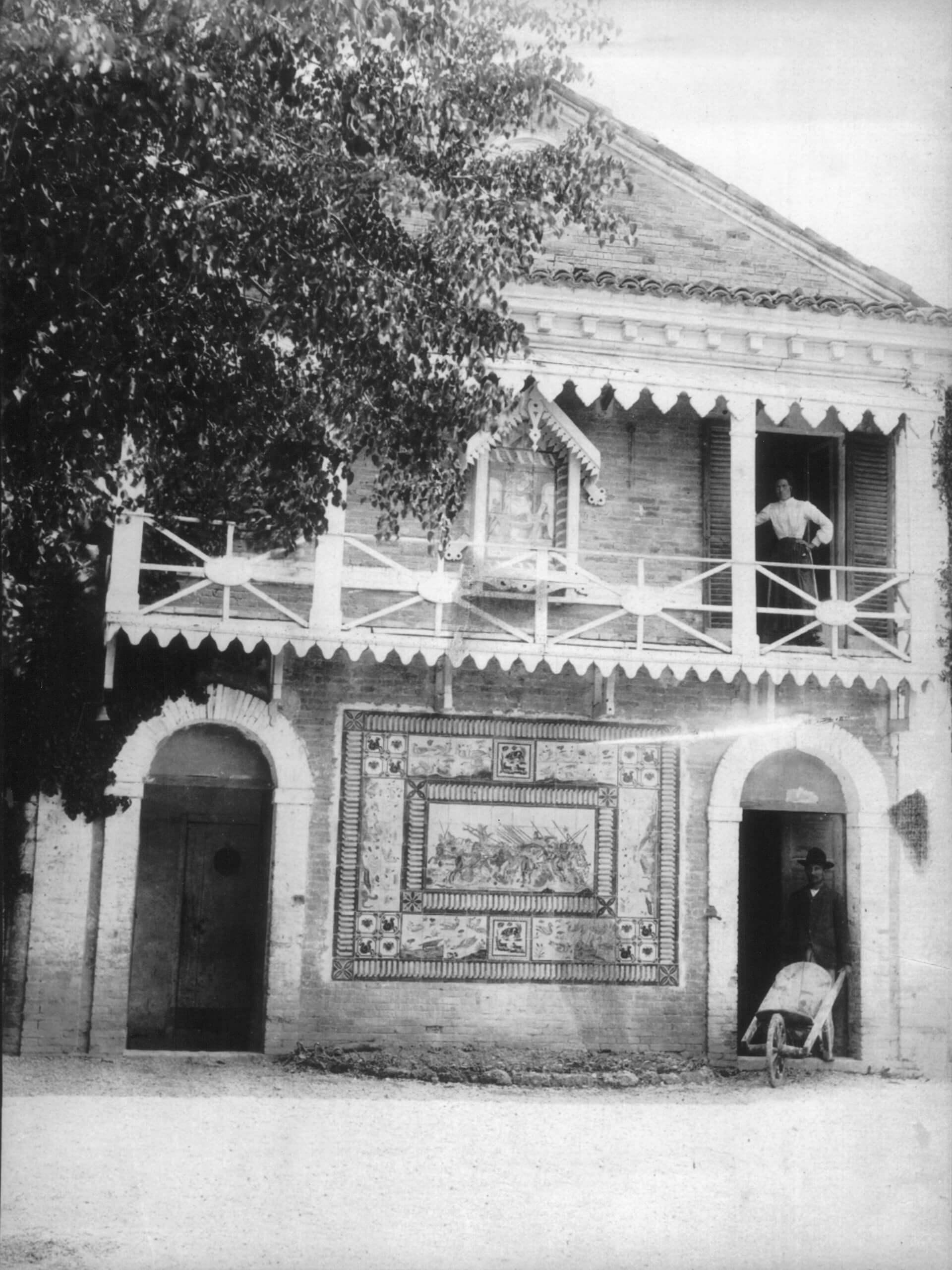 In alto, è collocata l’epigrafe di realizzazione del Parco nell’anno 1860, che recita “A sollievo delle cure, a piacere di sé e dei suoi questo suburbano presidio da agreste in amena villa ridussero i fratelli f.f. di Alessandro Vitali l’anno 1860”.