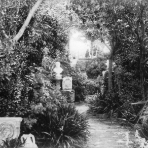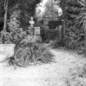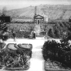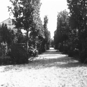 A sud, il parco era delimitato da un percorso lineare che terminava nei fuochi prospettici di due nicchie con statue, ed era scandito da colonnine con vasi di agavi sovrastanti e da cipressi posti a filare. La continuità visiva e prospettica del percorso è stata parzialmente interrotta con la realizzazione dell’arena spettacoli.