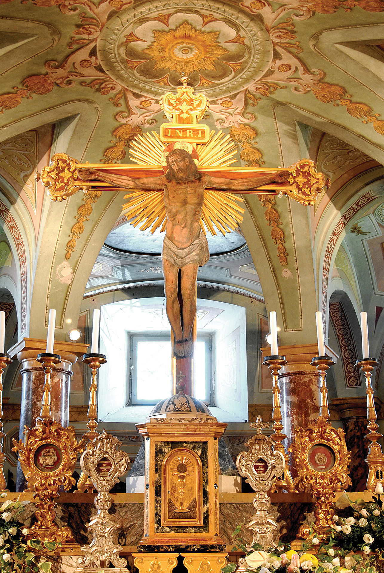 La stessa cripta, di origine duecentesca e più volte rimaneggiata nel corso della storia, è di notevole valore artistico. A tre navate, molto raccolta grazie alle piccole aperture che permettono l’ingresso di una luce soffusa, è ricchissima di marmi colorati, statue, reliquie, sculture e decorazioni, fra cui un sarcofago paleocristiano del III-IV secolo. Le sue volte ad archi sono state affrescate da Alessandro Ricci.