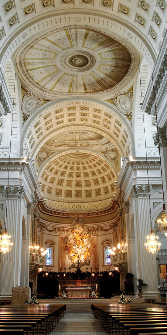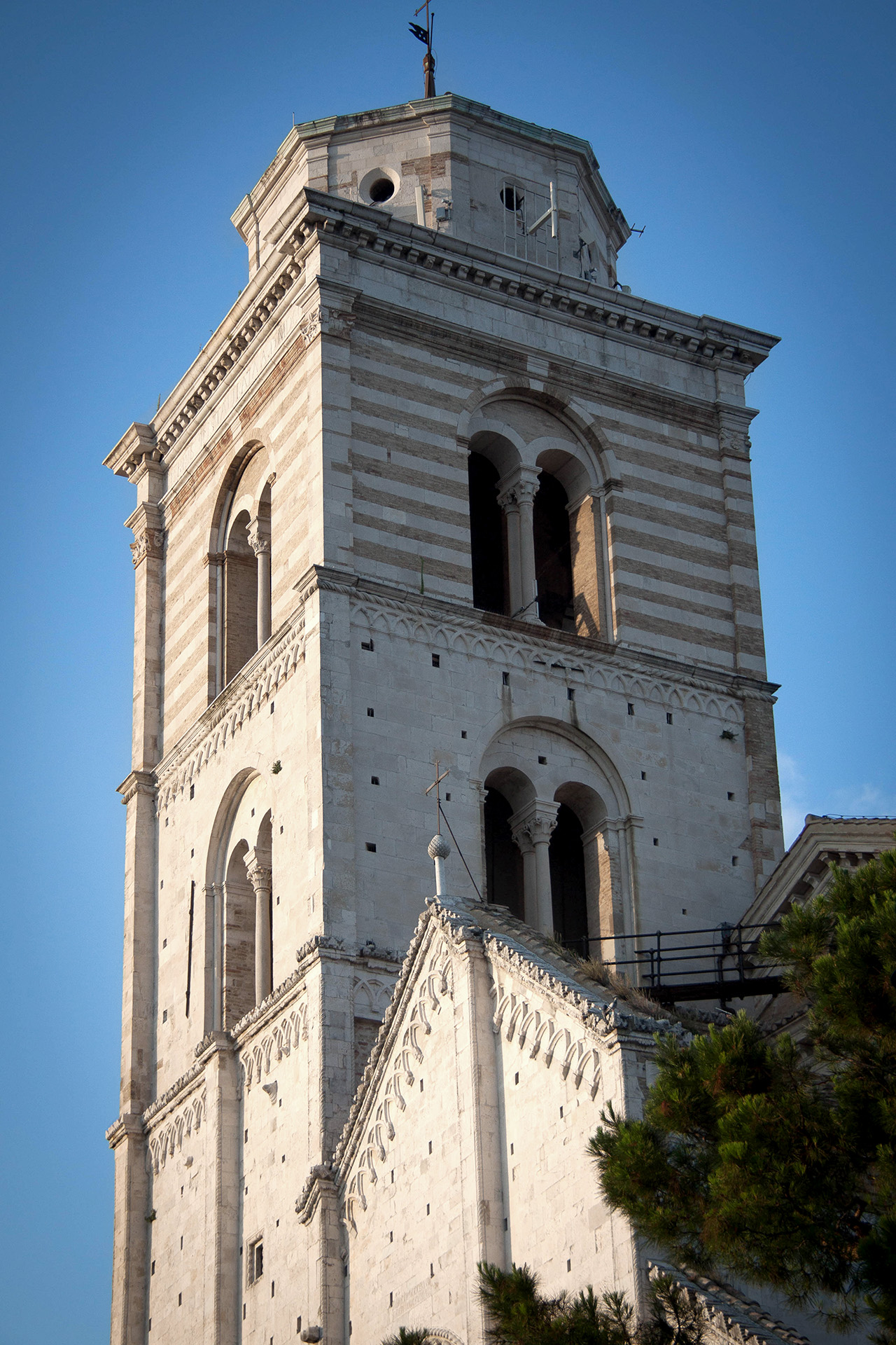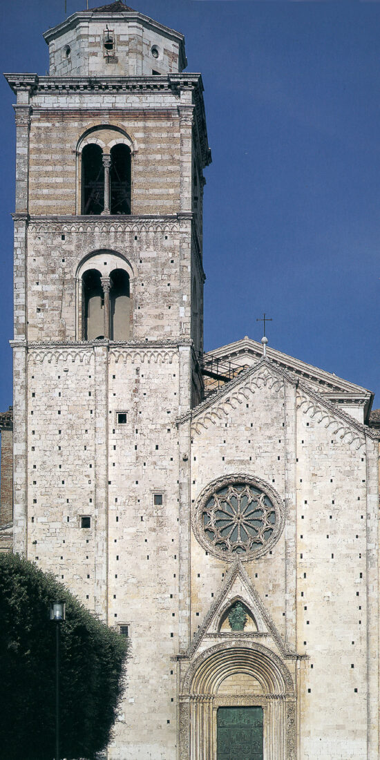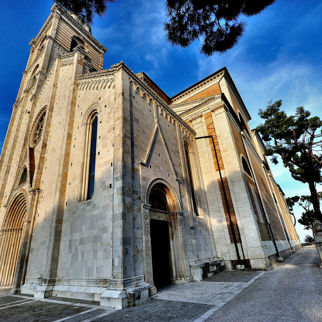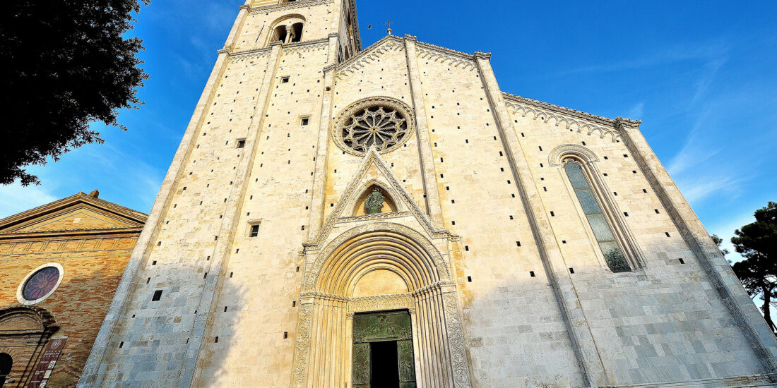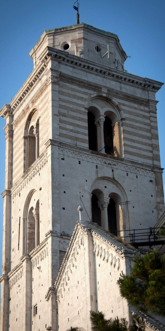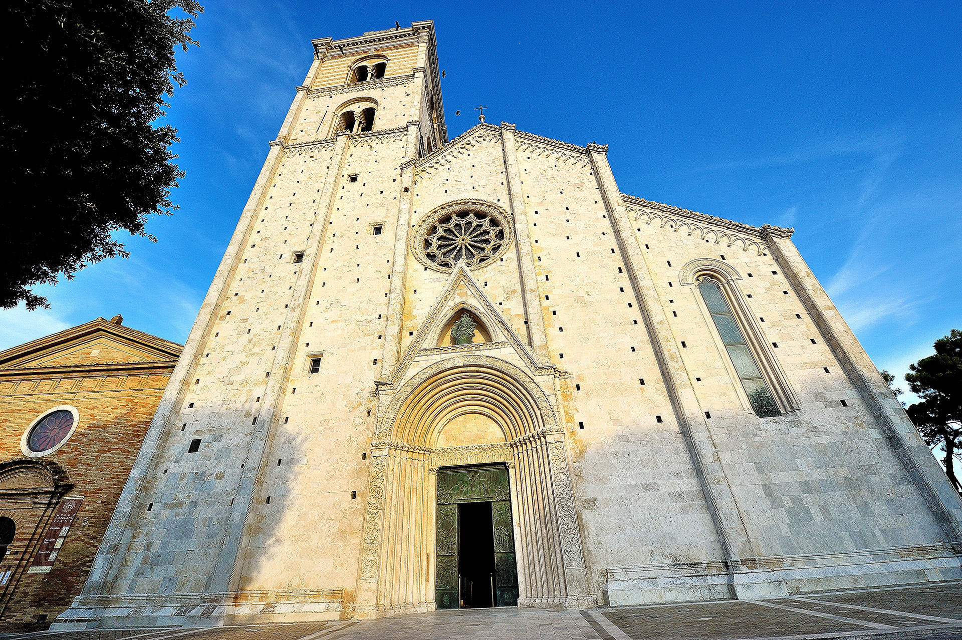 Ricostruita nello stesso luogo dove sorgeva la precedente chiesa, distrutta nel 1176, la cattedrale fu terminata nel 1227 quando l’architetto Giorgio da Como ne attestò il completamento, come indica una lapide posta all’ingresso sud. La cattedrale oggi presenta ancora la sua facciata originale in pietra d’Istria mentre il corpo della Chiesa fu completamente ricostruito nel 1781 su progetto dell’architetto Cosimo Morelli. Al suo interno sono visitabili le fondamenta dell’antica Basilica paleocristiana e la cripta del XVIII sec.