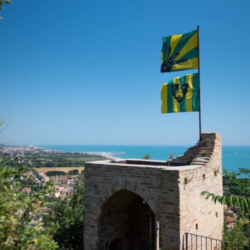 Dal torrione di avvistamento nel lato nord del borgo si gode della stupenda vista della costa di Marina Palmense e di tutto il litorale nord del territorio fermano.