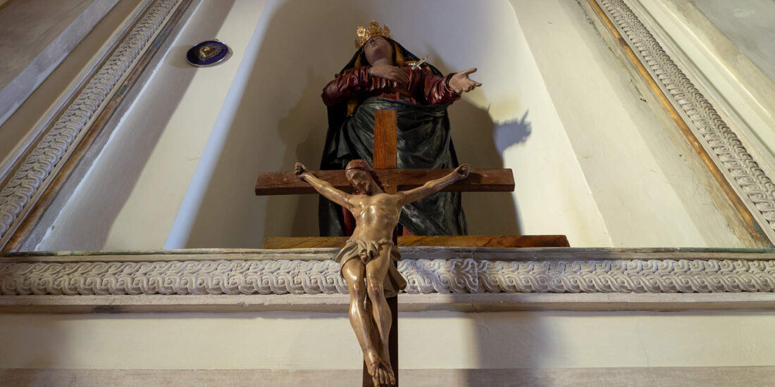 Usciti dalla chiesa, un ampio belvedere consente all’occhio di spaziare lungo le rive sabbiose dominando l’abitato di Porto San Giorgio, il moderno porto turistico e l’antico santuario di Santa Maria a Mare, centro devozionale di grande richiamo fin dal medioevo.