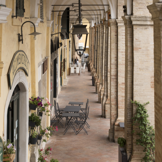 Il loggiato di San Rocco fu realizzato nel 1528, come ex voto contro la peste, dal nobile fermano Gian Francesco Rosati davanti alla chiesa di San Rocco edificata nel 1508.