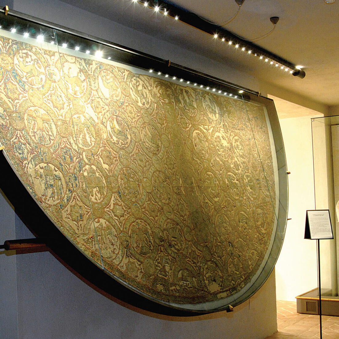 Nei locali del museo sono esposte testimonianze di un arco di tempo che dall’arte paleocristiana giunge fino agli inizi del ‘900, ripercorrendo le diverse fasi costruttive della Chiesa, la presenza di insigni vescovi, i rapporti con il papato, la liturgia, la devozione.