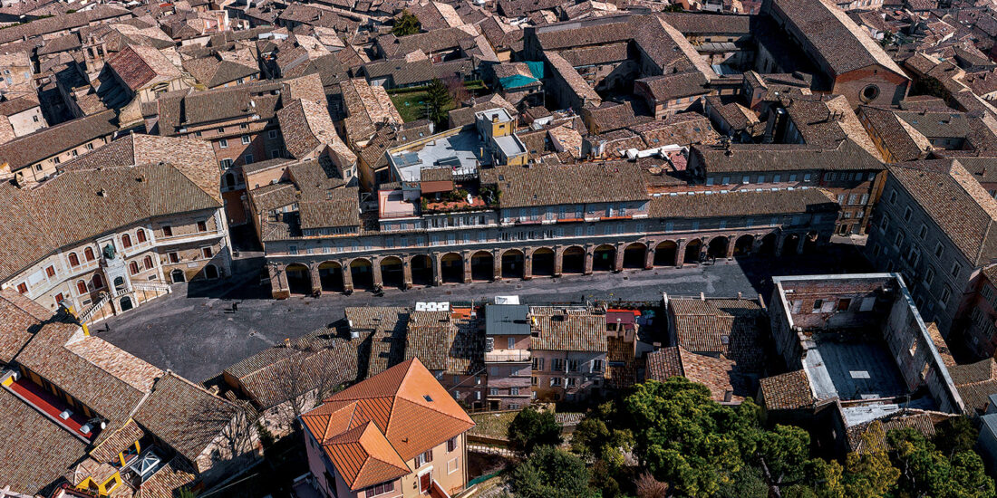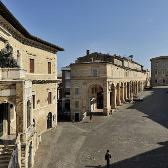 Piazza del Popolo è il cuore della città di Fermo. Accurata e lineare nelle forme, è delimitata a monte e a valle da due imponenti portici cinquecenteschi in mattoni e ospita gli edifici pubblici più antichi, ciascuno con le proprie caratteristiche architettoniche che, tuttavia, rispettano il rigore e l’uniformità della piazza.