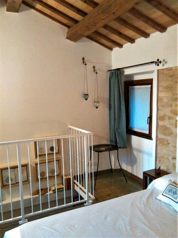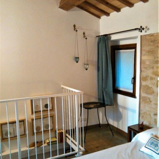 Il B&B offre una “vista libera” che dai colli maceratesi passa per il Monte Conero per poi naufragar dolcemente in questo mare Adriatico. L’azzurro del mare lo ritroverete nell’arredo della camera (tendaggi e parquet) mentre i colori della terra marchigiana sono nella parete in pietra tufacea e nel pavimento in cotto della cucina. Il B&B Liberavista è composto da un ingresso con punto cottura e bagno al pian terreno, mentre alla camera matrimoniale con terrazzo si accede dalla scala in legno.