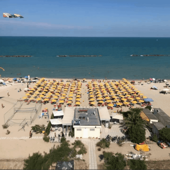 Posizionato nella bellissima fascia verde di Casabianca di Fermo, lo stabilimento è circondato dal verde e lontano dal traffico del lungomare. La sua posizione lo rende il luogo ideale per le famiglie con bambini piccoli e per chi è in cerca di relax