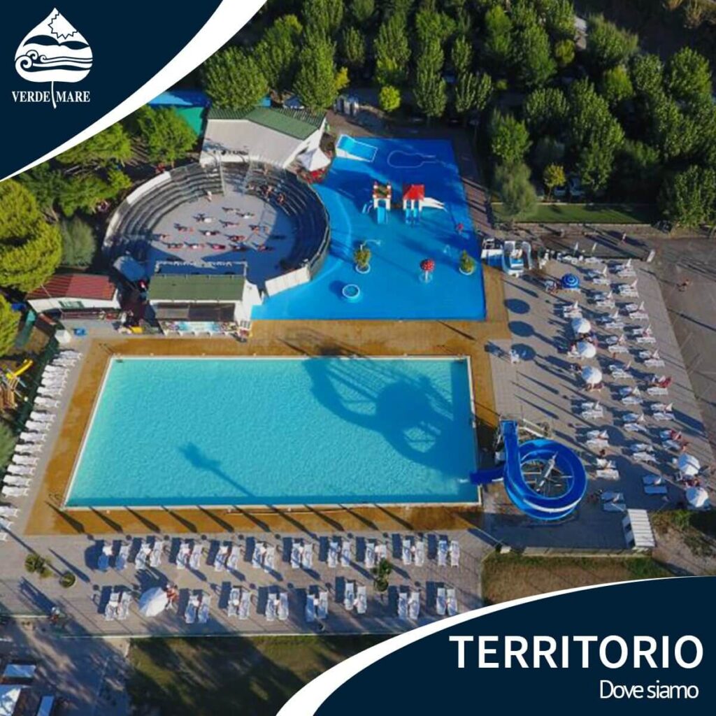 Posizionato direttamente sul mare, in località Marina Palmense, Il villaggio camping Verde Mare sorge ai piedi del caratteristico borgo medievale Torre di Palme. Il Verde Mare si suddivide in due aree: una vasta area che confina con il mare, dove sono presenti gli alloggi, e un’area, dietro la linea ferroviaria, dove sono presenti i parcheggi, l’area piscine e l’anfiteatro. La spiaggia è di sabbia misto ghiaia. Nella spiaggia privata, sabbia riportata