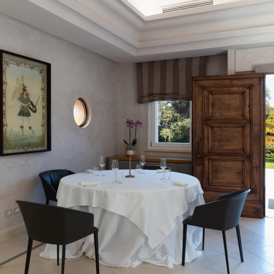 L’intimità di una villa d’epoca, l’esclusività di un 5 Stelle. Cinque sono le stelle di questo luxury refuge a ridosso del mare, nel bellissimo borgo di Torre di Palme, circondato dal Bosco del Cugnolo. Al ristorante di Villa Lattanzi il dialogo è ogni volta nuovo. Ma sempre gourmet. Qui si parte dalle materie prime di diverse regioni e si uniscono insieme per creare sapori creativi.